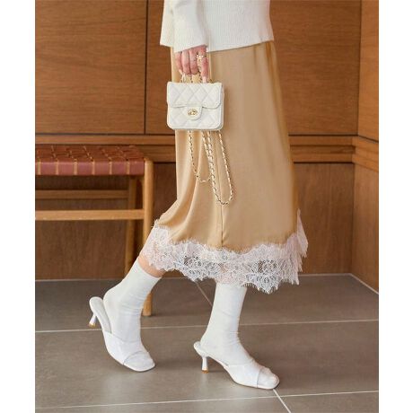 選べる2タイプミディorロング裾レースサテンスカート [M4360]