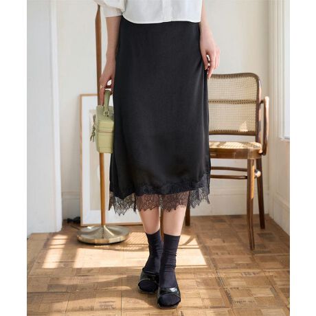 選べる2タイプミディorロング裾レースサテンスカート [M4360]