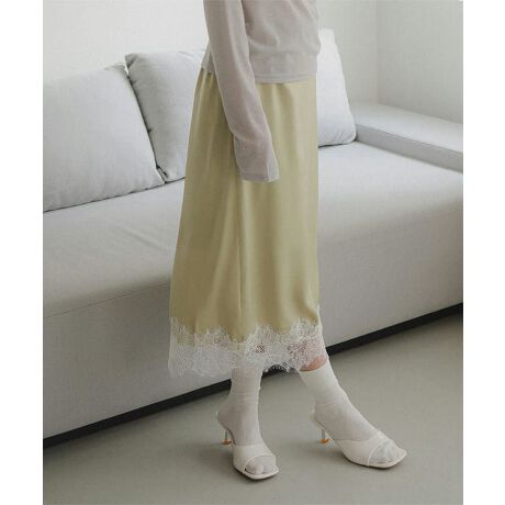 光沢感のあるサテン素材に裾レースをドッキング。