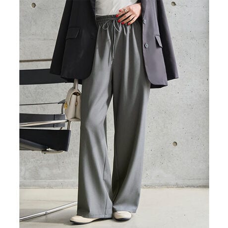 防シワ機能をそなえた美シルエットワイドパンツ。