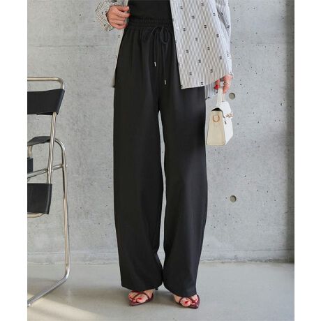 防シワ機能をそなえた美シルエットワイドパンツ。