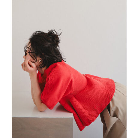 どんなボトム合わせとも相性のいい短丈ペプラムニットです。