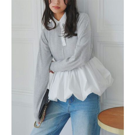 クラシカルなポロ襟と裾のバルーンデザインが魅力のニットトップス。