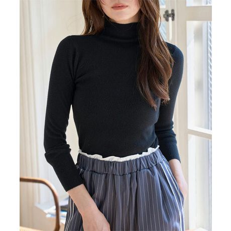 トップスで1枚使いだけでなく、トレンドのレースキャミやジャケットのインナー使いとしてもお使いいただけるベーシックなハイネック春ニット。
