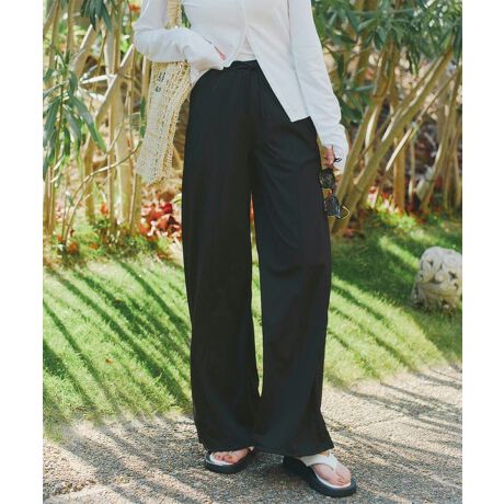 脚のラインを拾わないワイドシルエットで美脚見え効果も抜群。