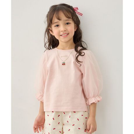 ANY KIDS/エニィキッズ/any FAM/any FAM KIDS/エニィファム/エニィファムキッズ/キッズ/トップス/Tシャツ/七分/コットン/チュール/さくらんぼ/チェリー/フルーツ/ビジュー/刺繍/通園/通学/おでかけ/デイリー/女の子/ガール/サスティナブル商品/トレンド