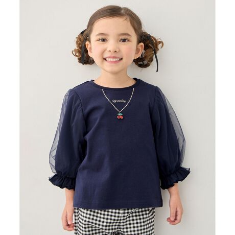 チュール袖とネックレス風のデザインが、おしゃれガールの心くすぐる♪