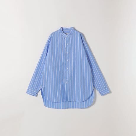 すっきりとしたバンドカラーと、上品なストライプ柄が魅力のオーバーシャツ。