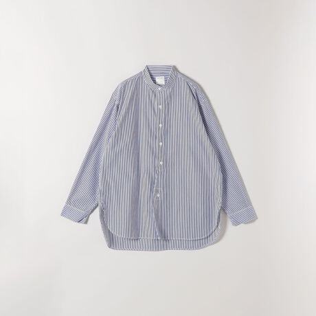すっきりとしたバンドカラーと、上品なストライプ柄が魅力のオーバーシャツ。