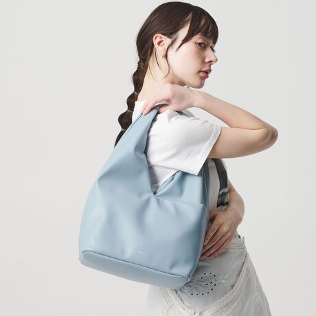 ナチュラルに折れ込むワンハンドルは、肩に掛けると身体に沿うようにフィットし安定感のあるシルエットに。