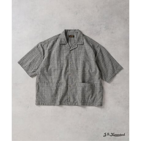 《予約》J.S.Homestead / コットン リネン チェック リラックス 半袖 開襟 シャツ