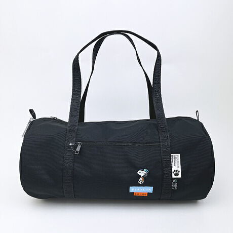 スヌーピーのカラフルなロゴタグがアクセントのロール型ボストンバッグです。レジャーシーンにはもちろん、通勤や通学などの荷物が多い日のデイリー使いにも◎便利な2ポケット付がgood☆はっ水素材を使用しているので雨の日でも安心!!見た目以上に大容量なので旅行用にもおすすめです♪