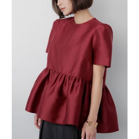 ペプラムギャザーが大人可愛いブラウス。