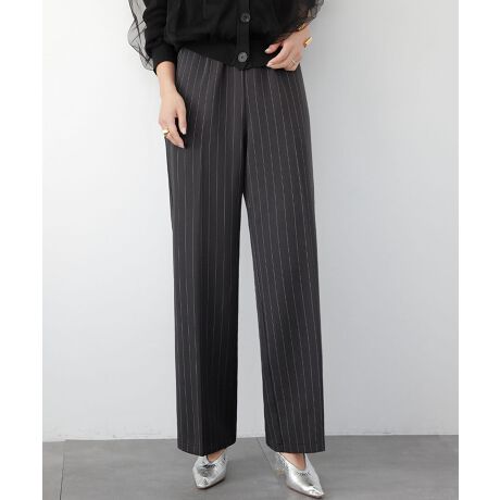 さらっとした生地感のストライプ素材にセンタープレスを入れることにより、きれいめなスタイリングにも合わせやすく仕立てました。