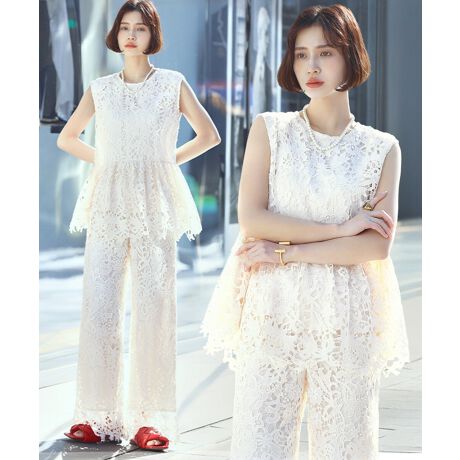 ケミカルレースブラウス・ワイドパンツセットアップ【今季No.1 ブラウスとパンツのセットアップ】