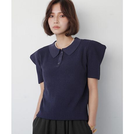 タックを入れたパワーショルダーがポイントのニットポロシャツ。