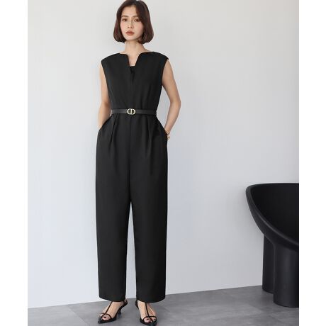 タック入りVネックオールインワン