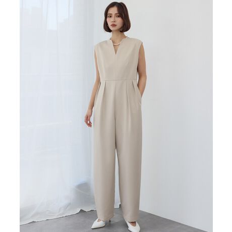 ウエスト切り替えとタックをあしらったきれい目オールインワン。