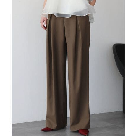 深め股上のウエスト位置と、ワイドなシルエットが美脚・脚長効果を生み出します。