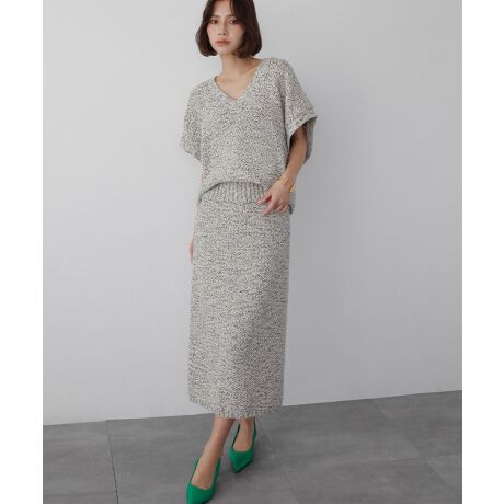 ミックス糸を使用したニットベストとスカートのセット商品です。