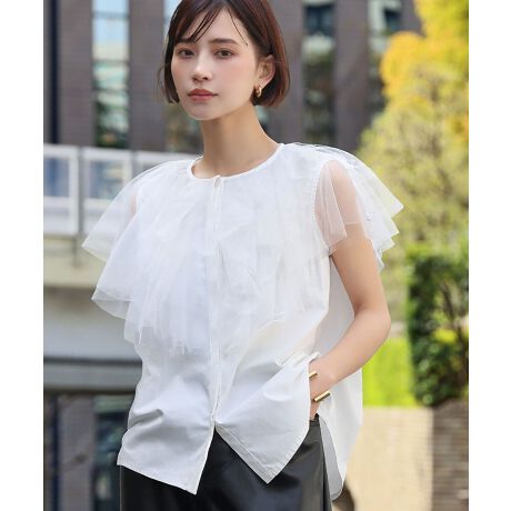 チュールラッフルカラーブラウス