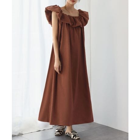 2WAYオフショルダーギャザーフリルキャミワンピース