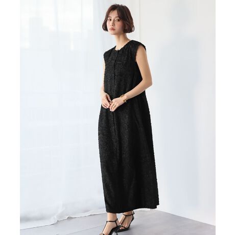 フリンジカットジャガードフレンチスリーブコクーンワンピース
