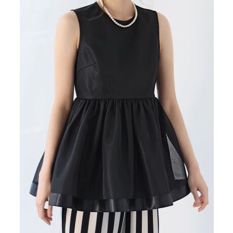 トレンドのシアー素材を使用したペプラムチュニック。