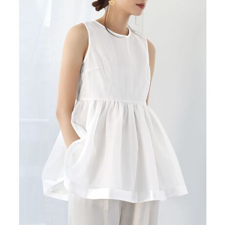 ハリ感のあるシアー生地を裏地と重ねることで、軽やかさと華やかさを演出。