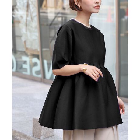 立体的なペプラムシルエットのニットトップス。