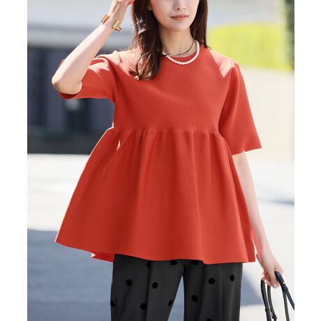 総針編みで360度どこから見えもシルエットがきれいに出るように仕上げました。