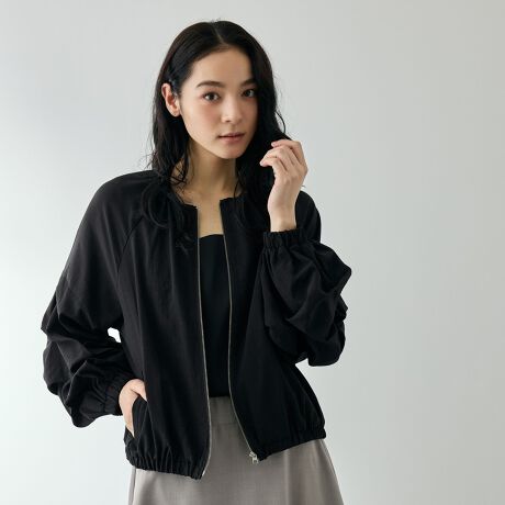 袖に施した3レイヤーのホイップスリーブデザインがアクセントになったシャツ感覚でご着用いただけるブルゾンです。