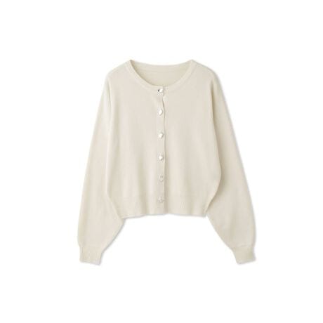 ニュアンス感のあるメタルカラーボタンに視線を奪われるさらりとしたテクスチャーのハイゲージニットクルーネックカーディガンです。