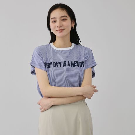 「EVERY DAY IS A NEW DAY.(新しい一日は、いつも今日から。)」のステートメントがプリントされた前後差のあるドルマンTシャツです。