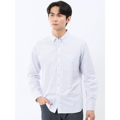 衿立ちの良いボタンダウンの長袖シャツです。堅すぎずラフ過ぎない、クリーンな印象に仕上げています。キチンと見えするので、プライベートやオフィスカジュアルにオンオフ兼用で大活躍してくれます。左胸ポケット付き。