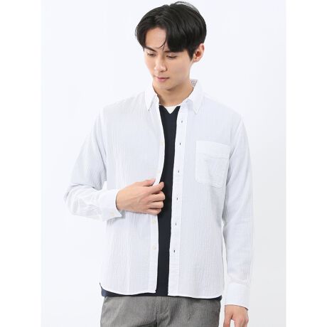 綿クレープ&サッカー ボタンダウン長袖シャツ
