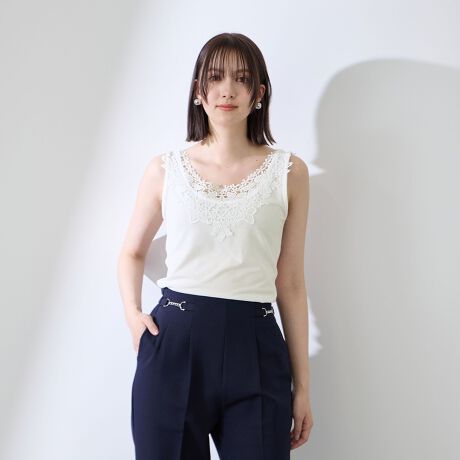 関連ワード:QUEENS COURT クイーンズコート レディース 新作 フェミニン 大人コーデ 2026春夏 2026SS 春夏 春物 春服 タンクトップ ポリエステル レーヨン レース 花・植物 ノースリーブ