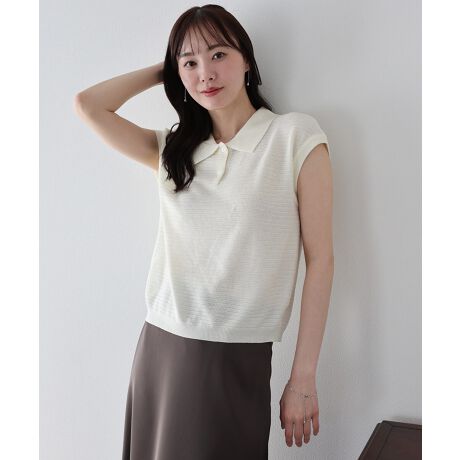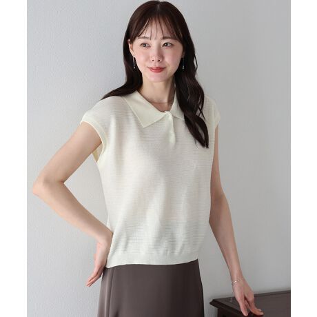 クラシカルなポロ襟に、絶妙な抜け感を加えたフレンチスリーブのサマーニット。