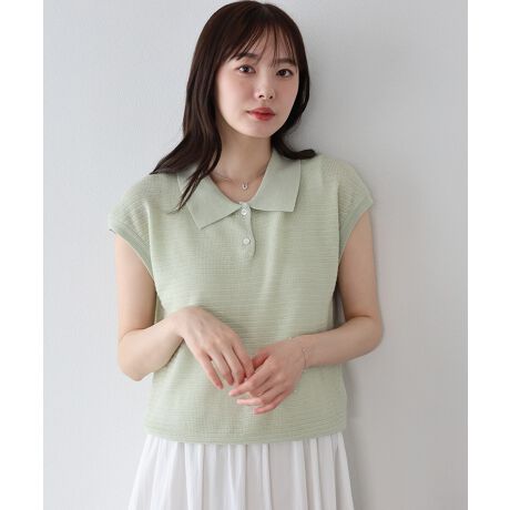 クラシカルなポロ襟に、絶妙な抜け感を加えたフレンチスリーブのサマーニット。