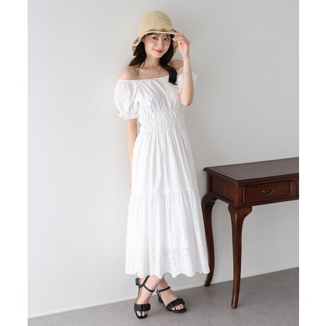 コットンレースオフショルダーワンピース