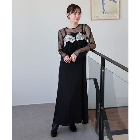 チュールティアードワンピ×ジャケットがトレンドライクなセットドレス