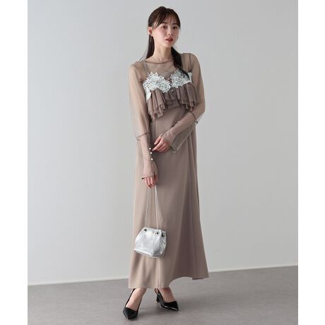 チュールティアードワンピ×ジャケットがトレンドライクなセットドレス
