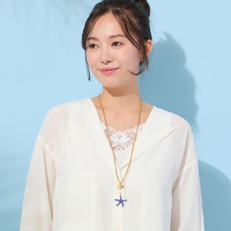 ■ポップなドットのヒトデが夏にぴったりな、2重チェーンネックレス■