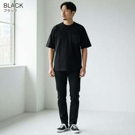 無地のシンプルなデザインにポケット付きのワンポイントが程よいアクセント。
