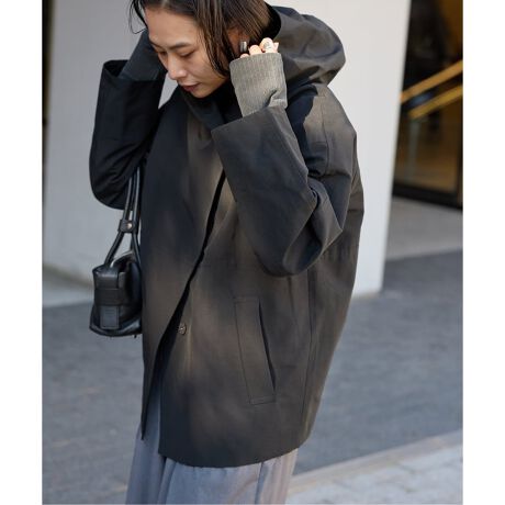 ハリ感のあるグログラン素材でフードの形やフォルムがきれいに出てくれるコート。