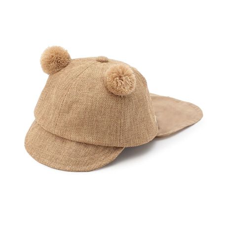 かわいらしいクマちゃんの耳が目を引くキャップです。面ファスナーで簡単につけ外しできる日除けを配し、日差しのケアに配慮。あご紐を備えているため、風で飛ばされにくいのも魅力です。暑い季節に重宝する接触冷感機能を備えています。