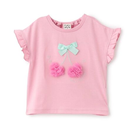明るいベースカラーにフルーツのモチーフをプラスしたTシャツです。フロントに大きくあしらった立体的なアップリケが目を引く、とびきりキュートなデザイン。袖口のさりげないフリルで上品なシルエットに仕上げました。どんなボトムスとも好相性で、毎日のコーデ選びが楽しくなるような一着です。