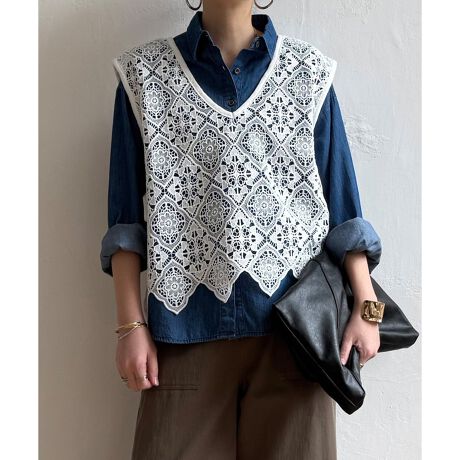 幾何学柄のレースを使用した、表情豊かな2WAYベスト。
