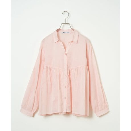エアリーな素材感がギャザーのデザインとマッチしたシャツライクブラウス。