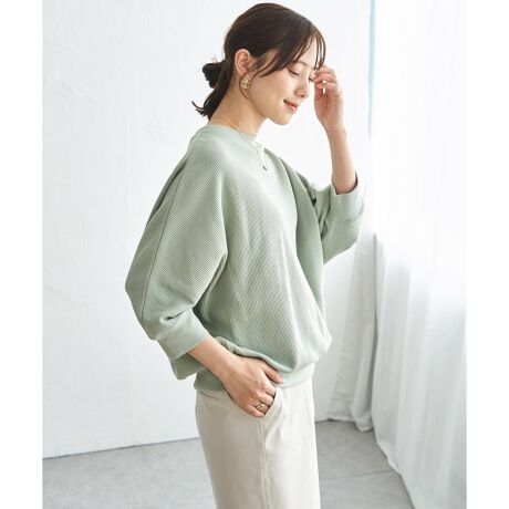 ゆとりのあるドルマンシルエットが自然に体のラインを包み込み、気負わず着られる一枚です。